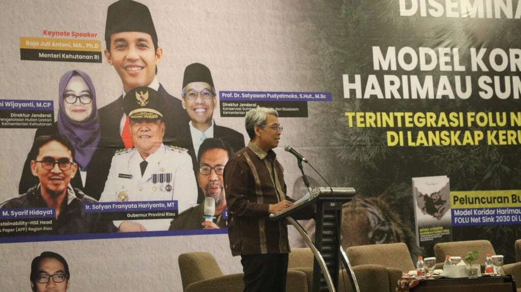 “FOLU Net Sink 2030 kami pandang bukan sekadar target penurunan emisi, tetapi kerangka pemulihan lanskap yang nyata, terukur, dan berkeadilan. Model koridor ini menghubungkan fragmen hutan penting agar harimau memiliki ruang jelajah yang aman dan konflik dapat dicegah sejak dari hulunya. Paradigma menyadari bahwa pemerintah, dunia usaha, akademisi, dan masyarakat sipil harus keluar dari pendekatan sektoral. Tanpa kolaborasi, komitmen FOLU Net Sink 2030 berisiko berhenti sebagai dokumen kebijakan tanpa dampak nyata. Melalui model koridor ini, kita berikhtiar agar harimau memiliki ruang untuk bermain dan berkembang biak tanpa harus berhadapan langsung dengan manusia,” ujar Riko.