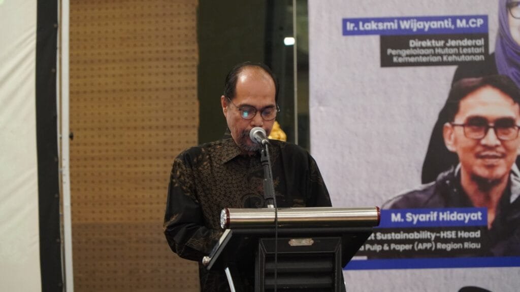 Melanjutkan diseminasi, M. Syarif Hidayat, Forestry Sustainability–HSE Head APP Sinar Mas, memaparkan pengelolaan satwa kunci prioritas di areal Perizinan Berusaha Pemanfaatan Hutan (PBPH) APP Forestry Riau.