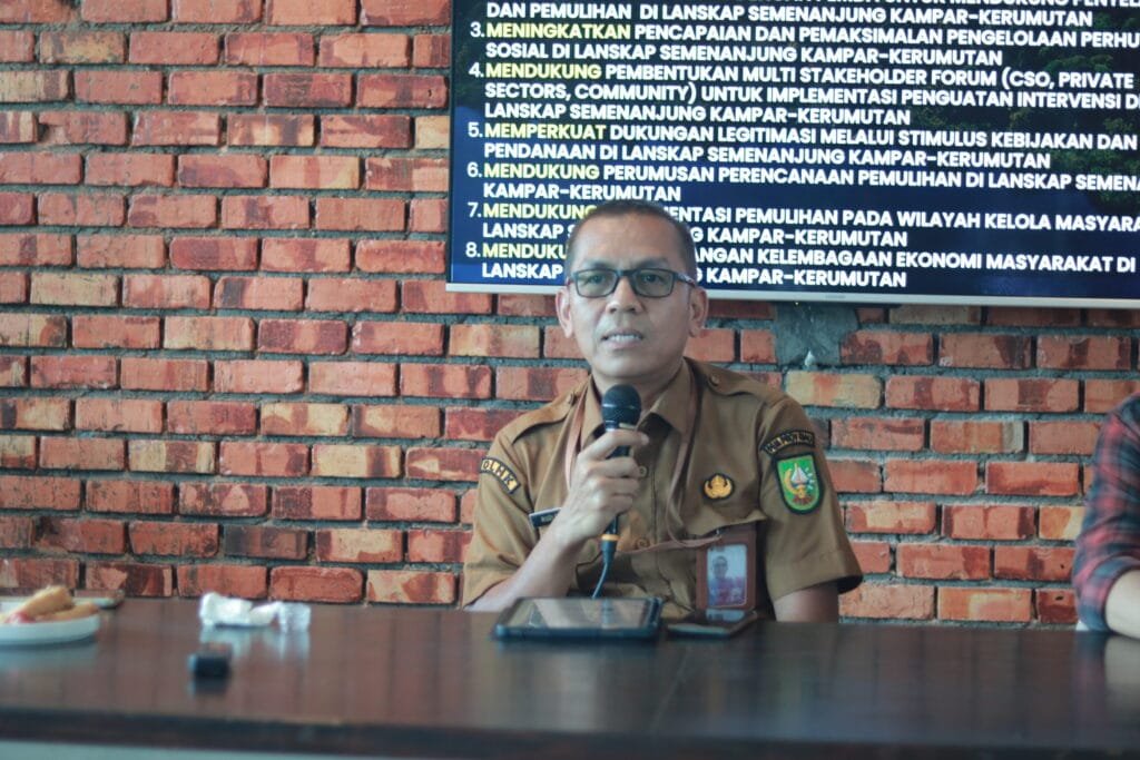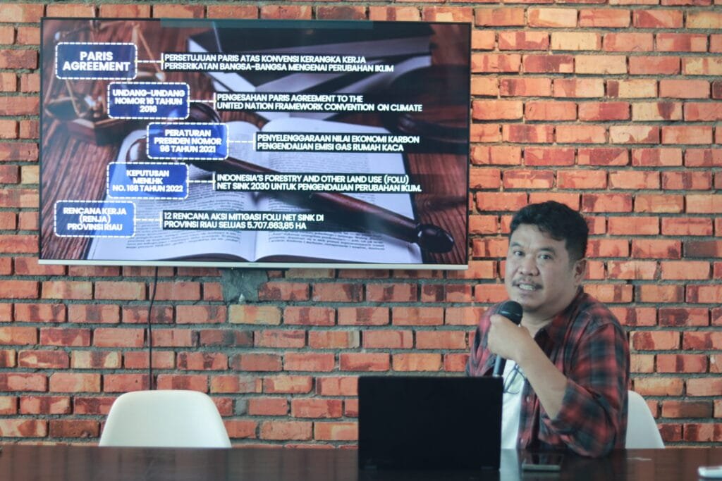 Diawal diskusi, Riko Kurniawan Direktur Paradigma menyebut kegiatan ini untuk mendorong dan membentuk kolaborasi antara Tim Renja FOLU Net Sink Riau dengan pemangku kepentingan pada Lanskap Semenanjung Kampar-Kerumutan. Riko juga menjelaskan mengapa pilihannya di Lanskap Semenanjung Kampar-Kerumutan. Dalam paparannya Riko menyebut, “Dari data dan verifikasi lapangan kedua lanskap ini masih mempunyai tutupan hutan alam yang luas, gambut dan mangrove yang baik dan terjaga. Kemudian Pemerintah Daerah Pelalawan dan Pemerintah Daerah Siak serta sebagian privat sektor pemegang izin pemanfaatan hutan di dalam Lanskap Semenanjung Kampar-Kerumutan sudah berkomitmen untuk menjaga hutan yang tersisa. Selain itu isu ini juga sudah dibawa dan direspon baik saat COP 27 atau Konferensi perubahan iklim PBB di Mesir 2022 lalu.”